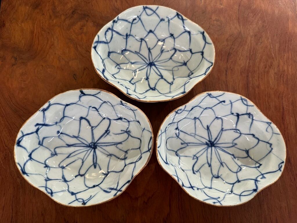 網目文様は、漁で使う網を図案化した文様で「幸せをとらえる」という意味もあり、縁起の良い柄を万作さんらしいのびやかなタッチで描かれています