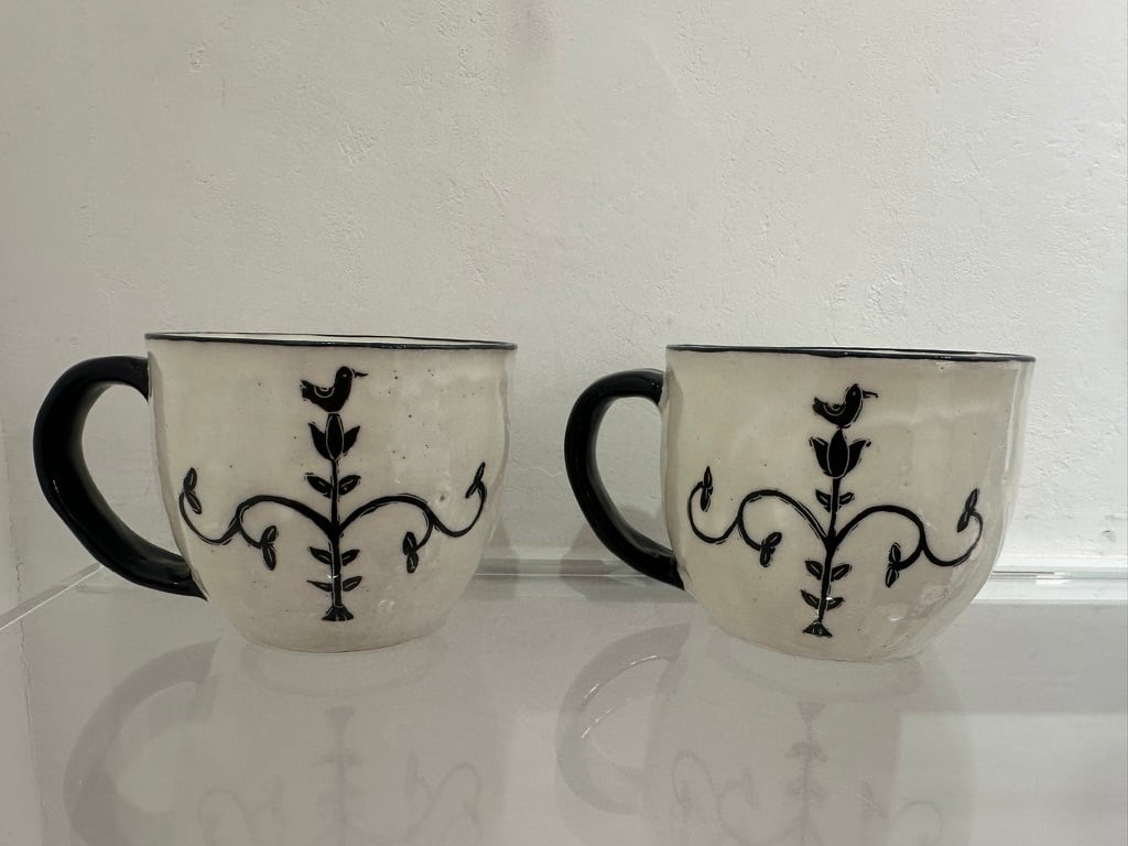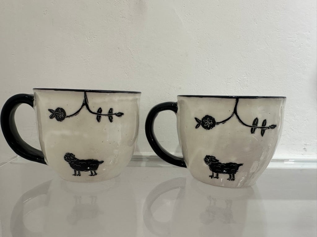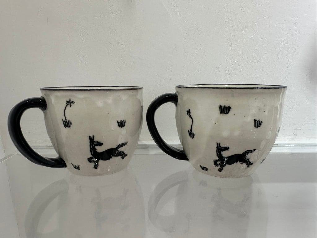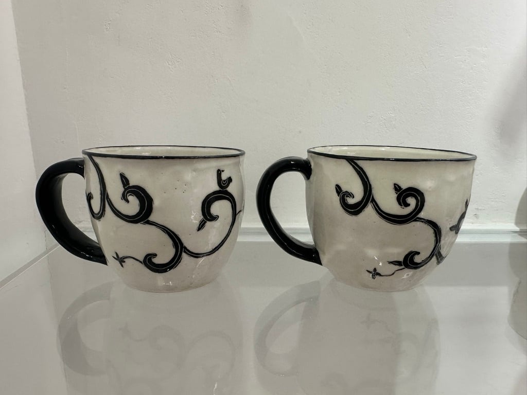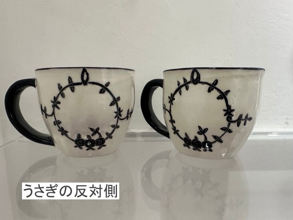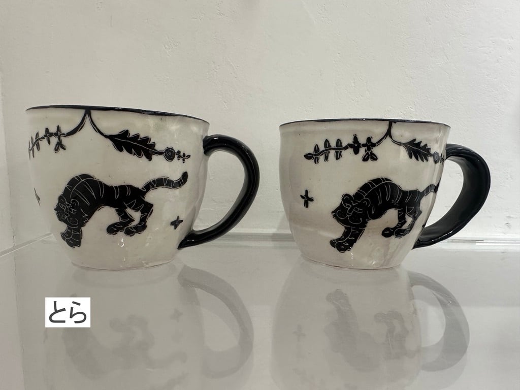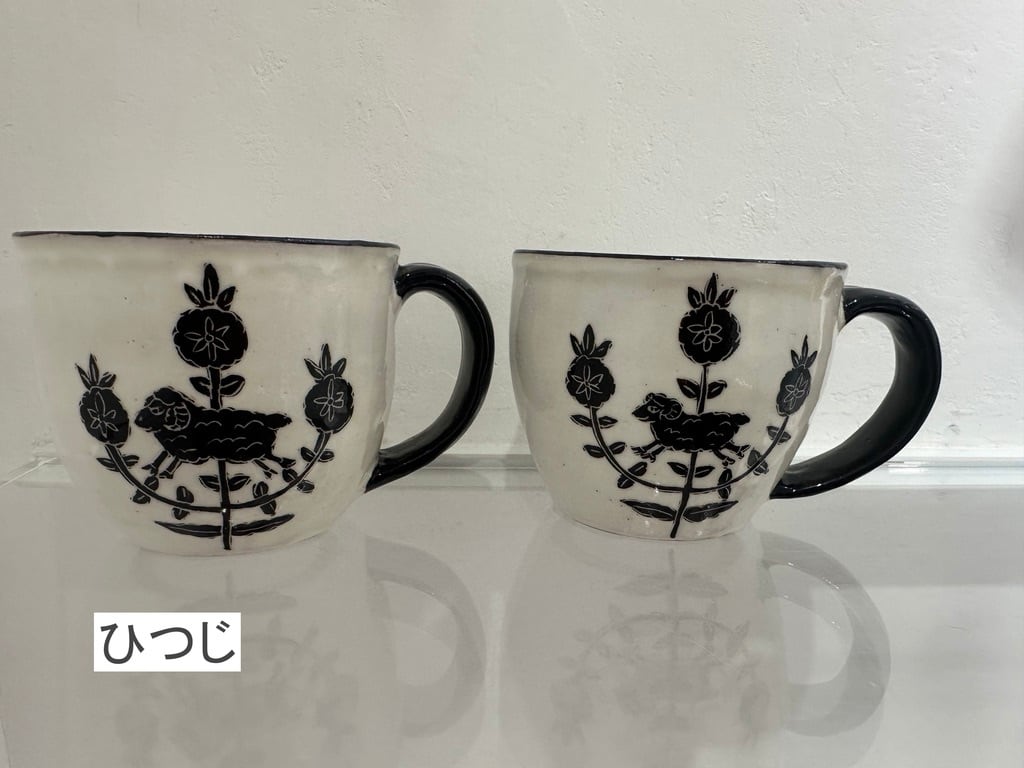 持ち手と口元の黒、ボディの白とのコントラストもくっきりとして楽しいマグカップです